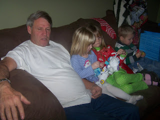Rick said it wasn't the ugliest one on the lot but it was close.. I'm finding that to be a true statement... haha... however, I gave it my best shot and put the lights on, needles falling all over, ornamments on, needles falling faster, move one big ornamnet here.. move it there.... finally decide it's enough.. add icicles.. and light the sucker up.. to me.. it's still UGLY.. to the sweet angel babies, my grandkids, it's beautiful.. and in the end.. that's all that matters!