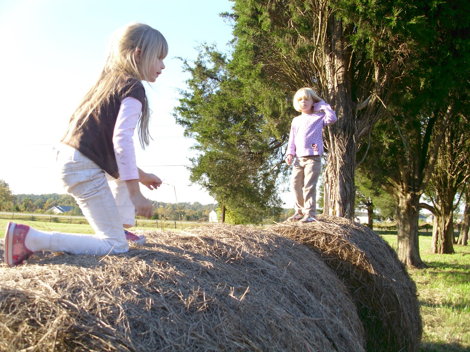 This year the girls had their first experience of running along the hay bales.. doesn't sound like much.. but it is probably one thing all kids seem to enjoy.. When I taught preschool those kids and parents loved to run them as well!